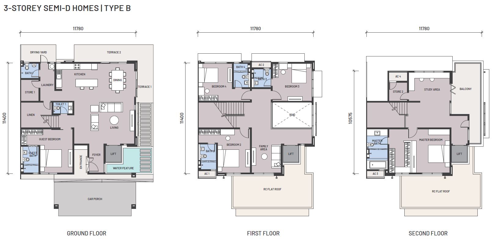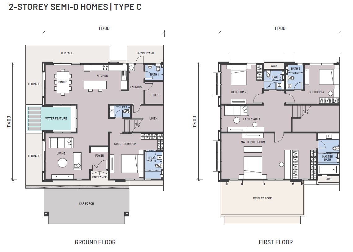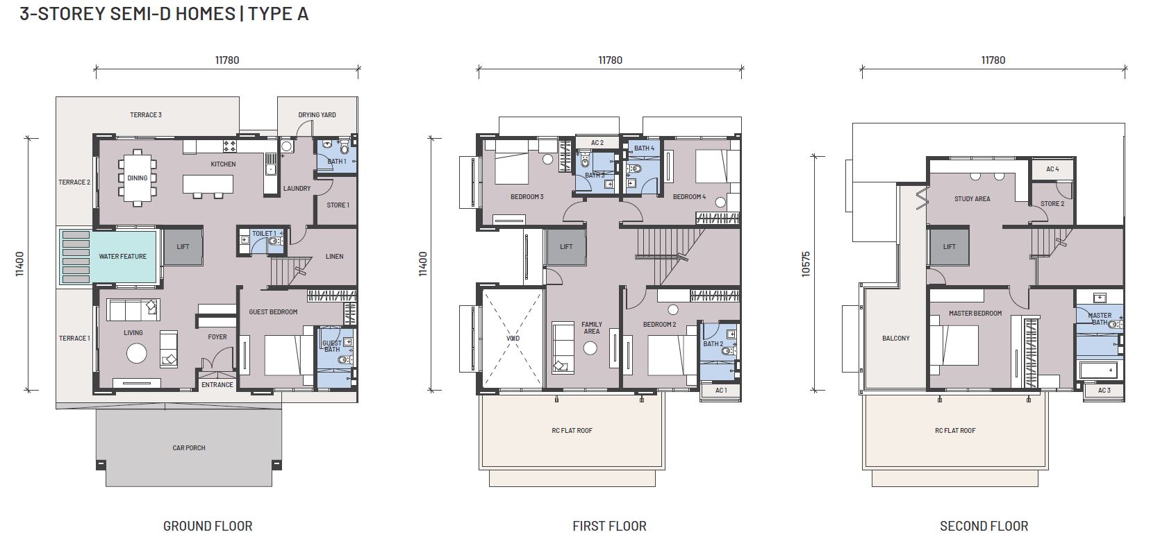 3 Storey Semi-D (Type A & B) | 2 Storey Semi-D (Type C & D)