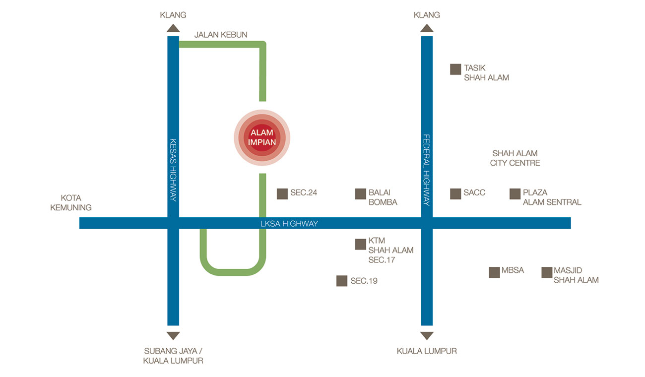 Situated just 8km away from the Shah Alam City Centre, Alam Impian provides residences easy access to various facilities and amenities, such as schools, malls, parks and more. The well-connected nature of Alam Impian is an added boon for those who work in Kuala Lumpur, as the township is linked via the Lebuhraya Kemuning – Shah Alam (LKSA), and the KESAS highway, while also gaining easy access to the Federal Highway and the ELITE highway.