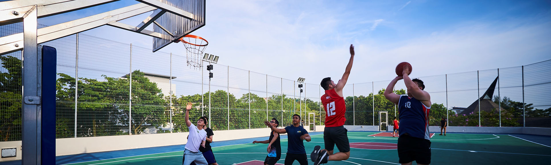 The sports centre features a newly joined court combining futsal and basketball court designs. This new court sprawls in the open ground next to the Tennis Court.